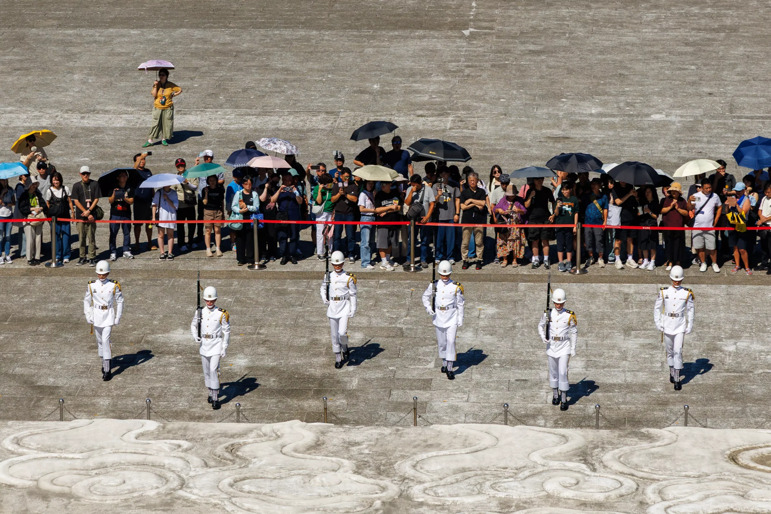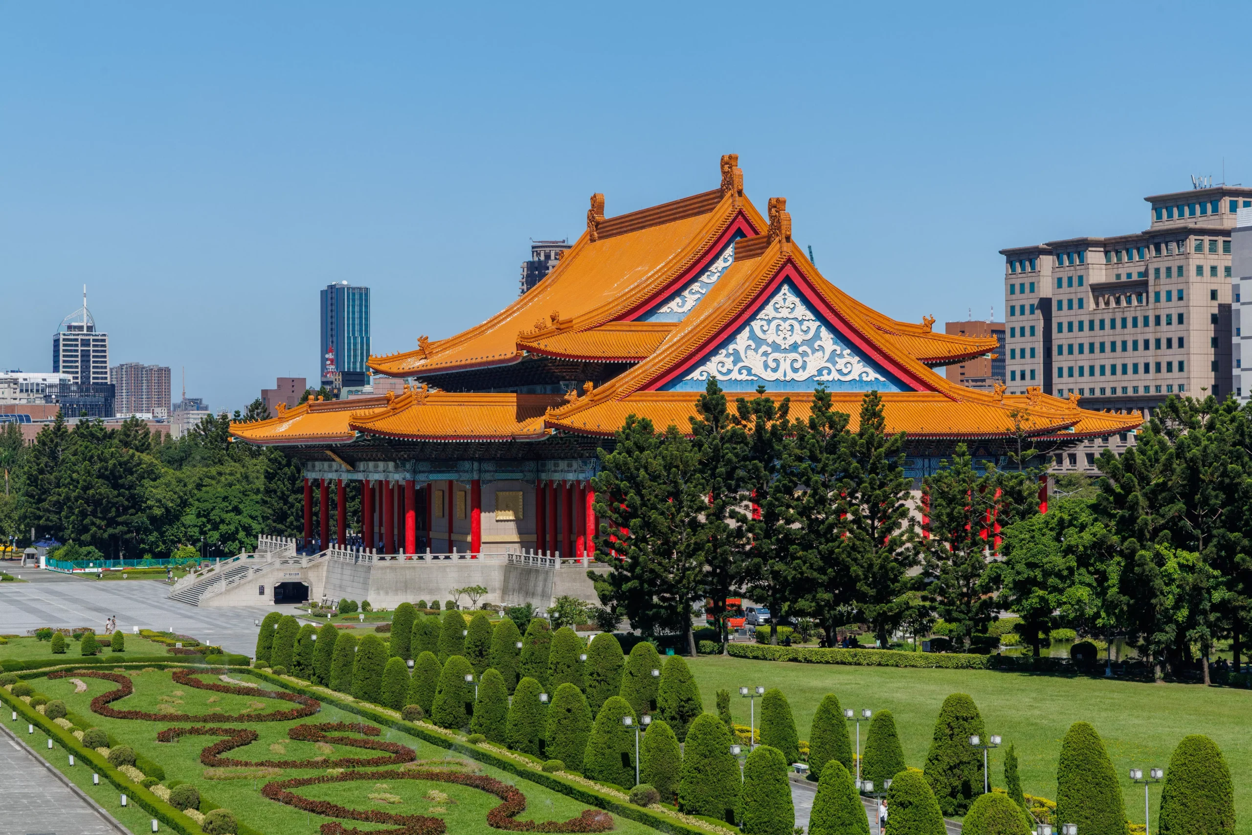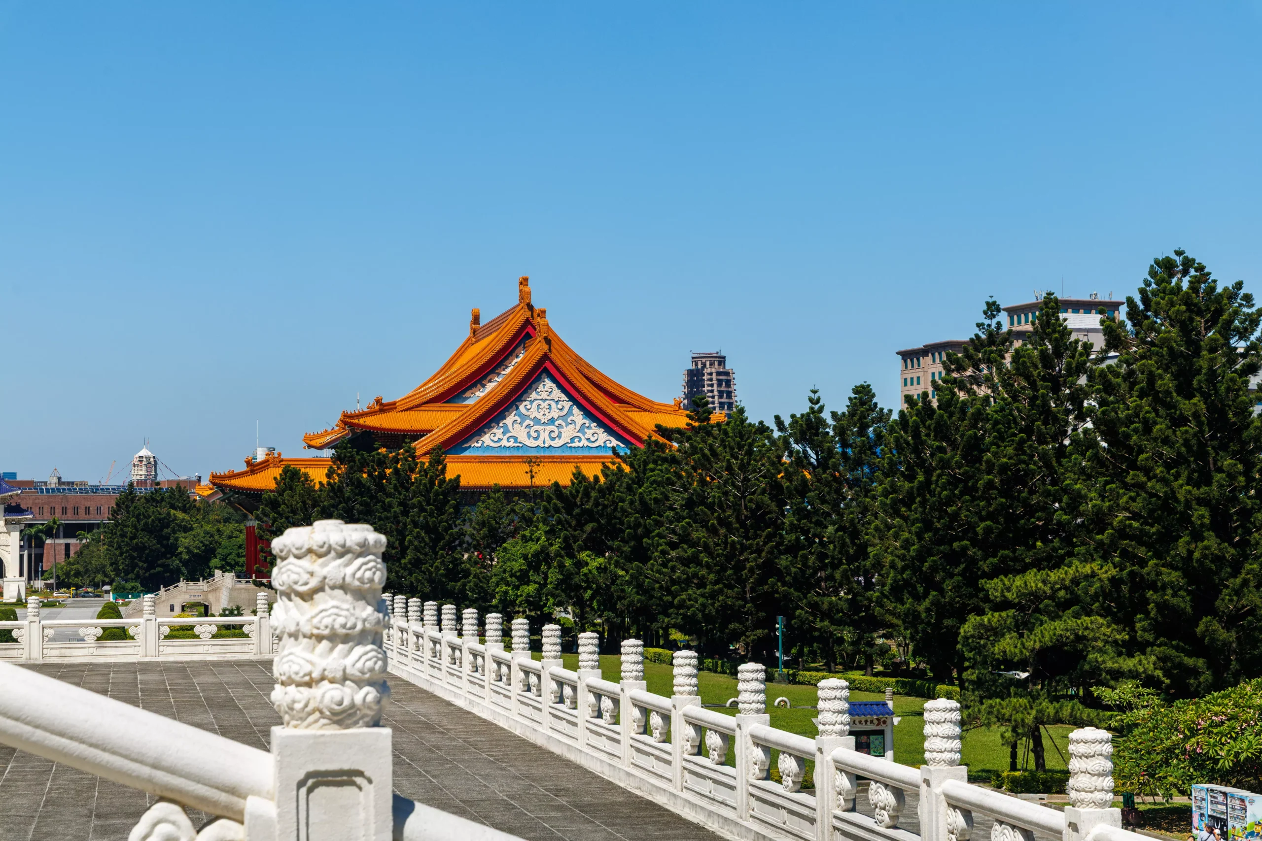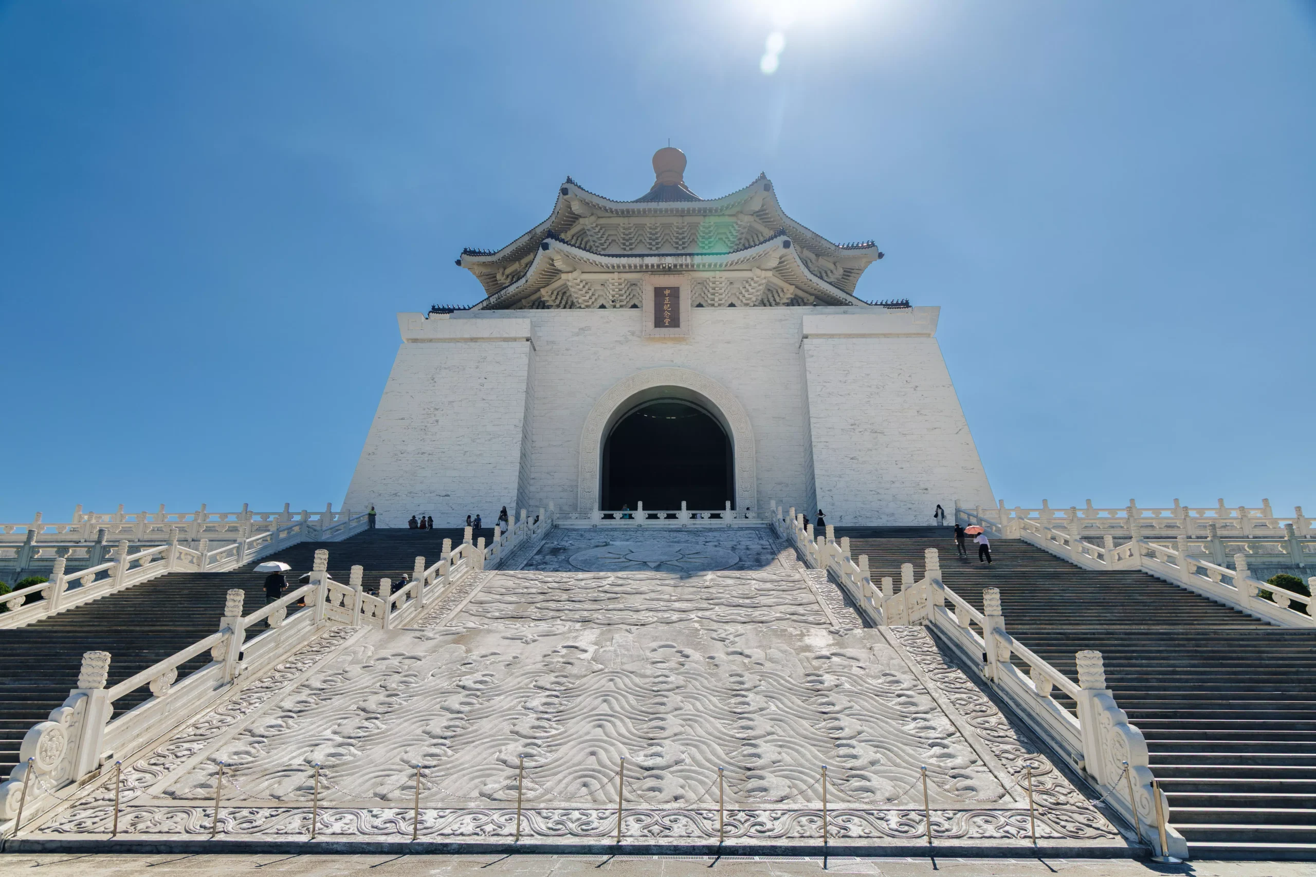 Few buildings in Asia have quite the presence of the Chiang Kai-shek Memorial Hall. You come around a corner in central Taipei and suddenly there it is, this vast white marble pyramid topped with a deep blue octagonal roof, sitting at the far end of a plaza so large it makes the people crossing it look like ants. The scale is deliberately overwhelming, and it works.