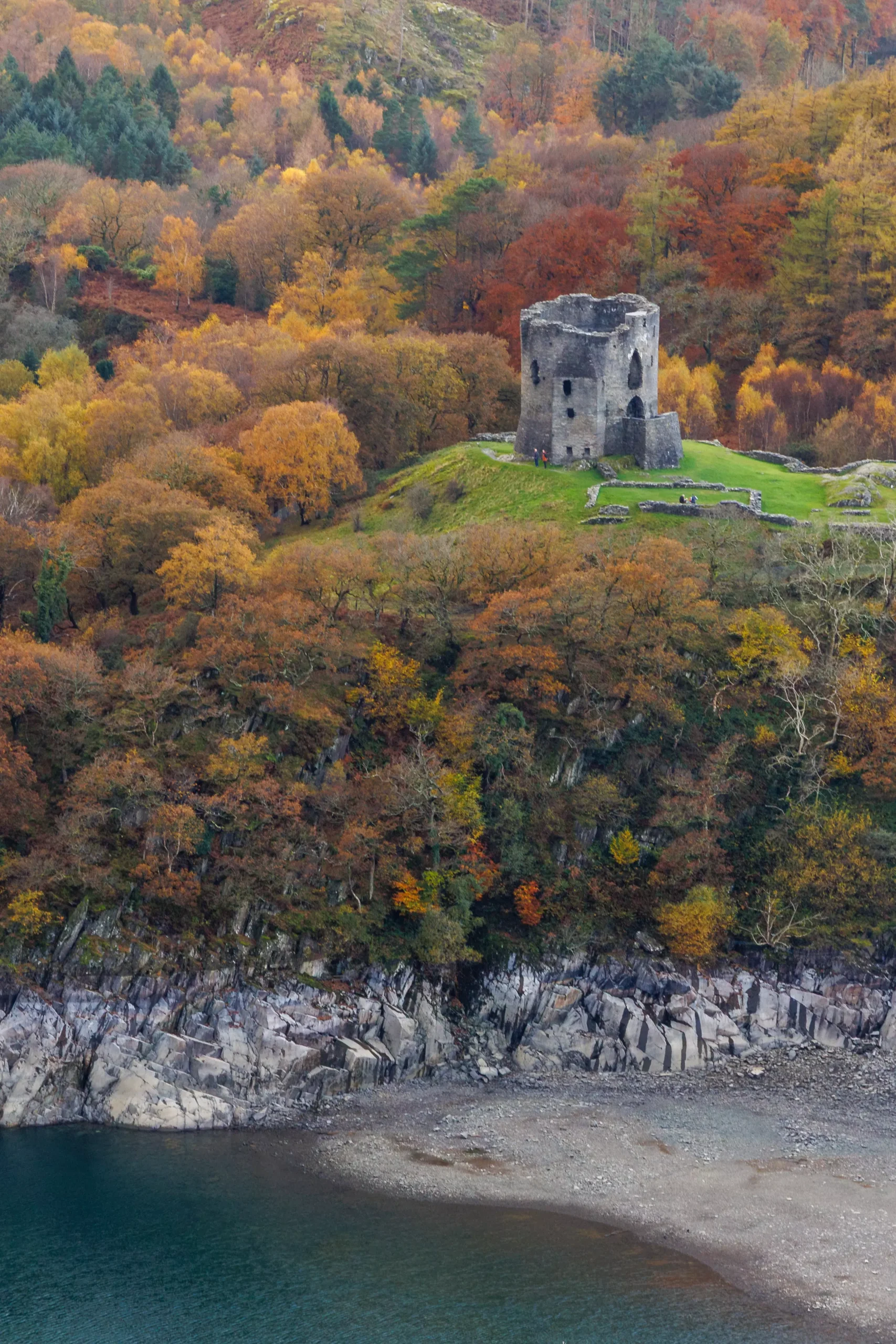 What strikes you most, though, is the view. From the upper terraces you can see the entire Llanberis valley spread out below — Llyn Padarn, Dolbadarn Castle sitting on its wooded hillside, the Snowdon massif rising behind it all. On the day I was there, mist was rolling in and out of the valley, and there were moments when the whole scene took on a quality that felt closer to painting than photography. I shot a lot of frames. I kept more than I usually do.